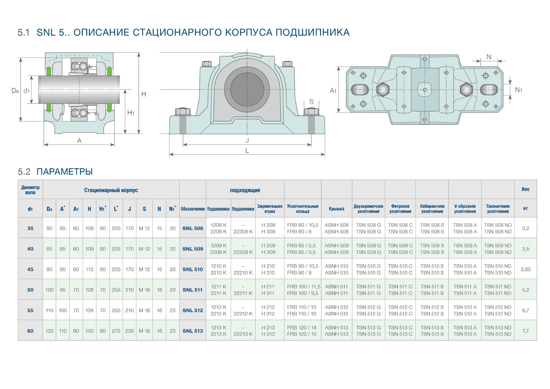 - разъемный корпус SNL - размеры от SNL 508 до SNL 532